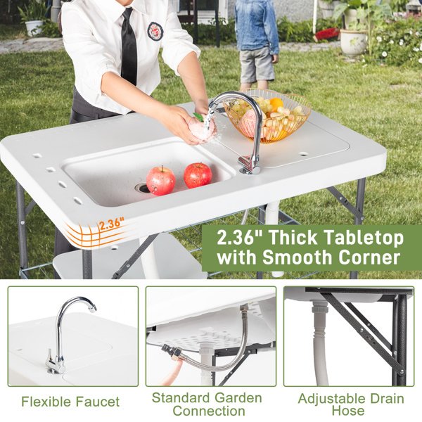 Do you enjoy picnics? If so, this Outdoor Folding Multifunctional Fish Table Picnic Table is highly recommended to you. It can help you with quick and convenient fish killing and cleaning. This table adopting high quality material, which features sturdy and durable. It includes spray gun and faucet, so that it's very convenient for you. Moreover, foldable design makes this table easy to store and convenient to carry. It's good for cutting meals, vegetables, fish, etc. Don't hesitate, just take this practical fish table home!