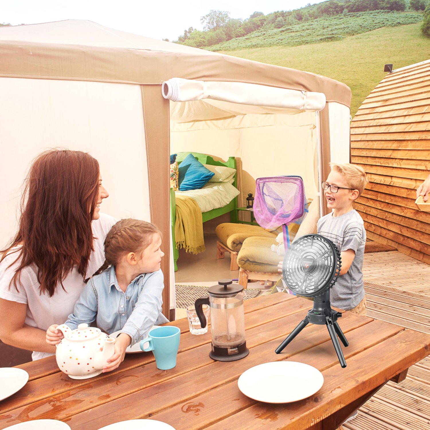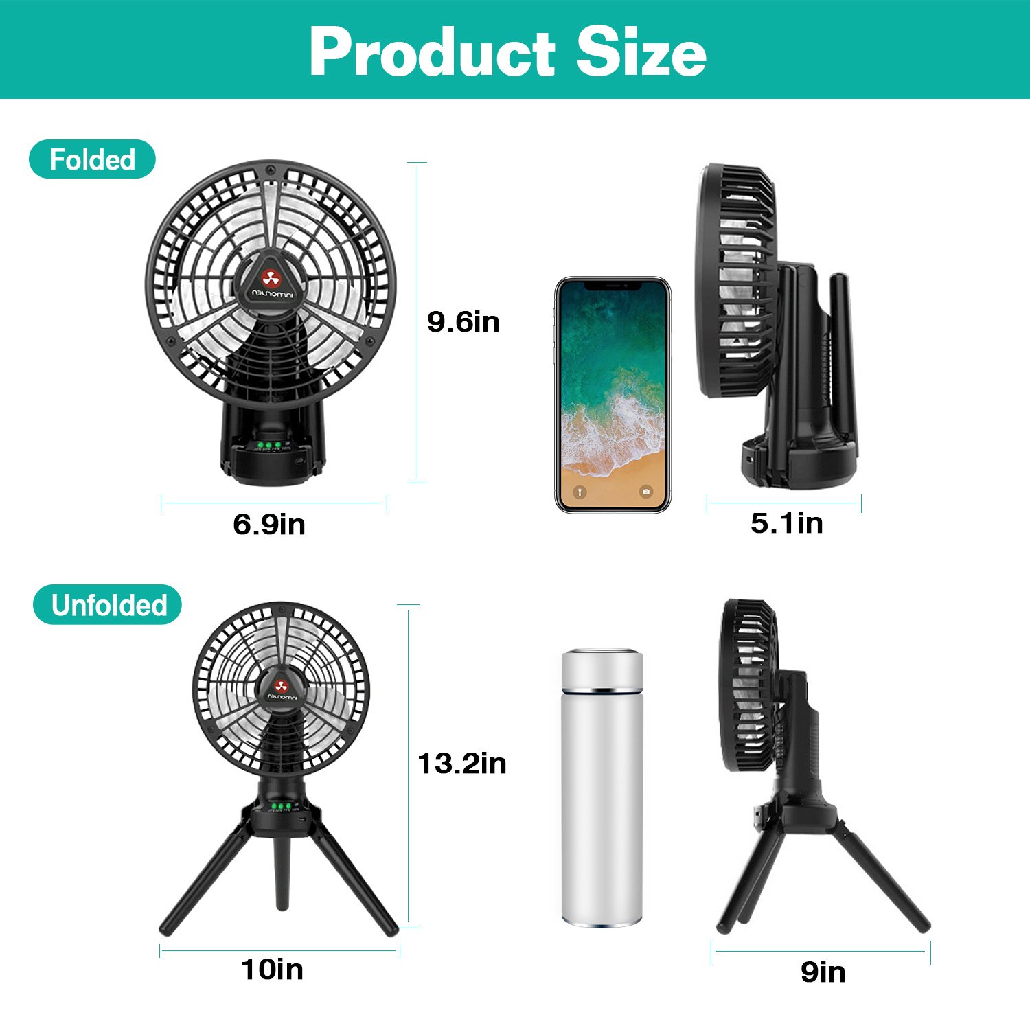 *3 Mounting Styles*:Equipped with 1 foldable tripod and 1 hanging hook on the bottom,our camping fan can be hung in the tent,put on the flat ground or table. A perfect companion for home and travel when summer is coming. Suitable for camping,fishing,backpacking,hiking and other outdoor activities.