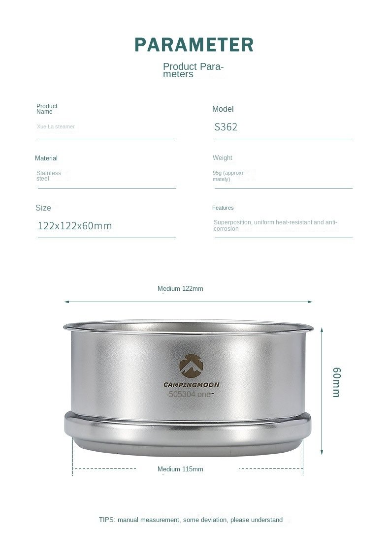 Home > S362 picnic portable snow pull bowl steamer lattice steam drawer outdoor camping picnic stainless steel small dumpling steamer