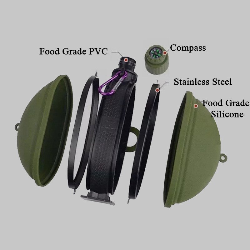 Home > Collapsible Military Water Bottle Silicone Water Kettle Canteen with Compass Foldable Water Bottle for Traveling Hiking Camping