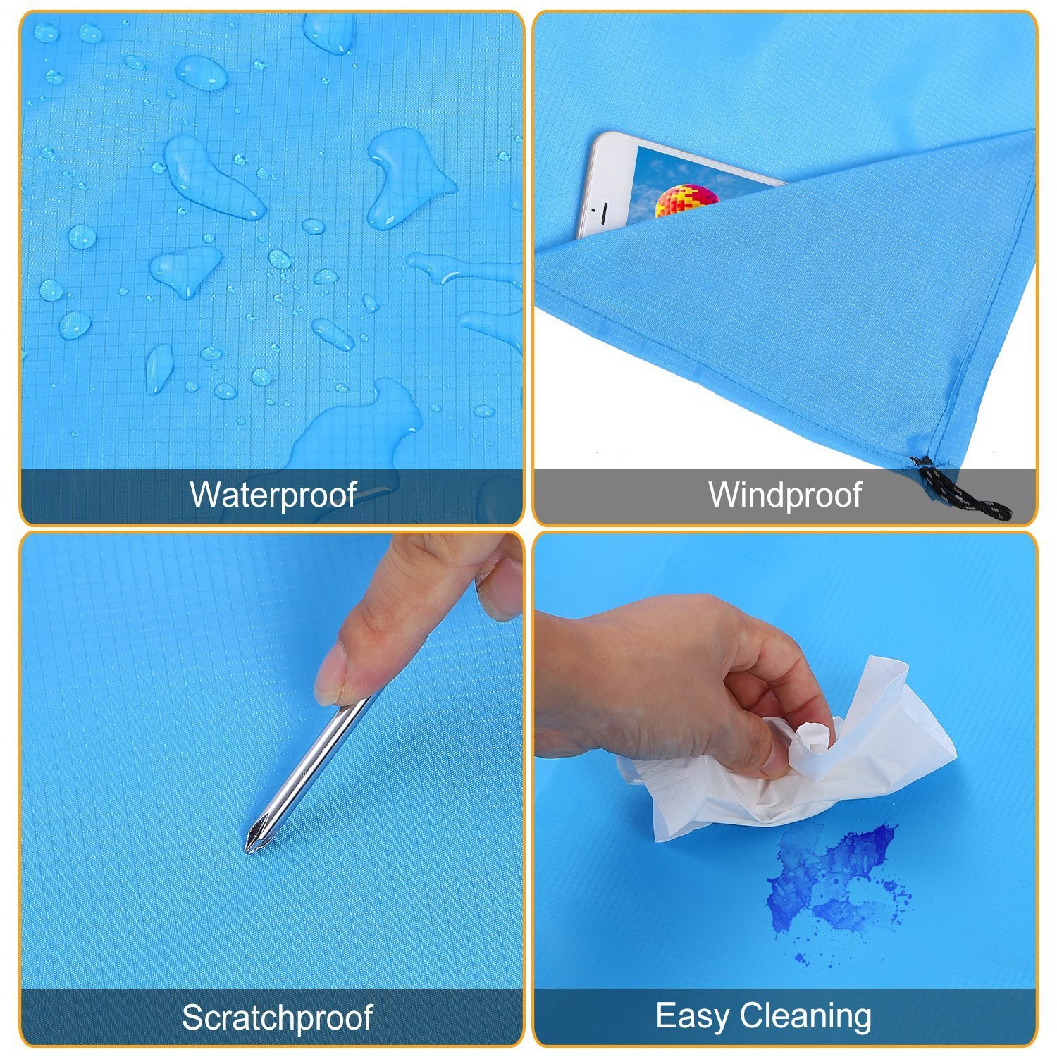 **WATERPROOF & SANDPROOF*:Made of quality 210T Polyester which is strong,durable,lightweight and waterproof. NO WORRY about the sand sticking to the beach blanket and easy to get off the sand and brush off. Meanwhile,this beach blanket also dries quickly so you don't need to wait for it to dry for long time. Get it as your travel accessories.