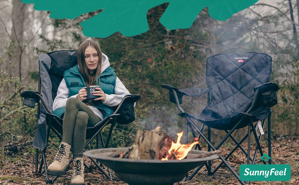 A camping lawn chair that is built for anywhere: Use it as a camping chair, folding chair, lawn chair, travel chair, beach chair and more. Suitable for outdoor adventures, tailgating, fishing, backpacking, beach, picnic, sport games, car travelling, or just put it in the backyard, cabin, balcony, patio lawn parties. The SunnyFeel camping chair is an essential to add to your camping accessories.