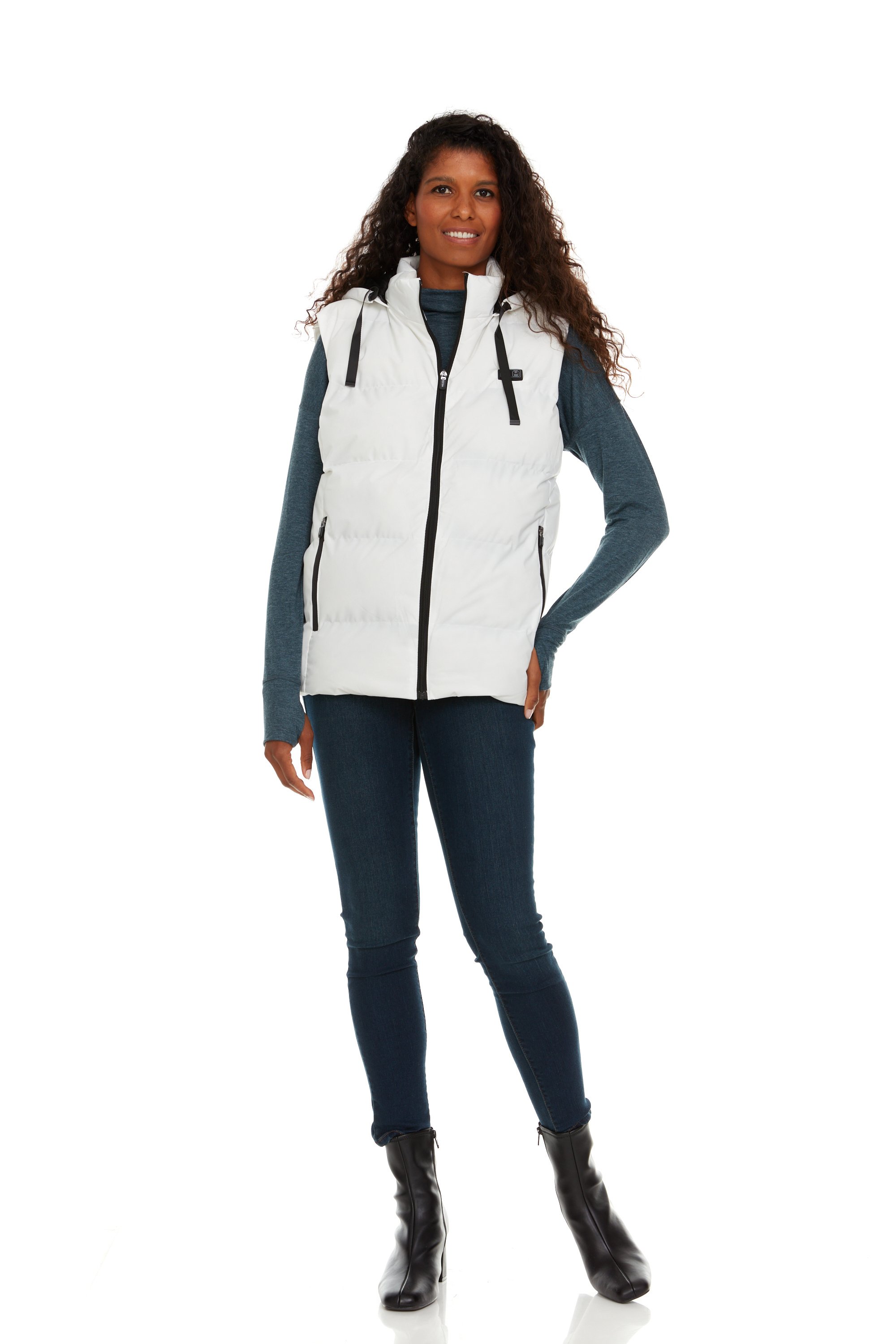 With a detachable hood, the Helios Heated Vest adapts to your needs effortlessly. Wear it with the hood for extra warmth or remove it for a sleek, sophisticated look. The stylish rubber zipper puller adds a touch of flair to your outfit.