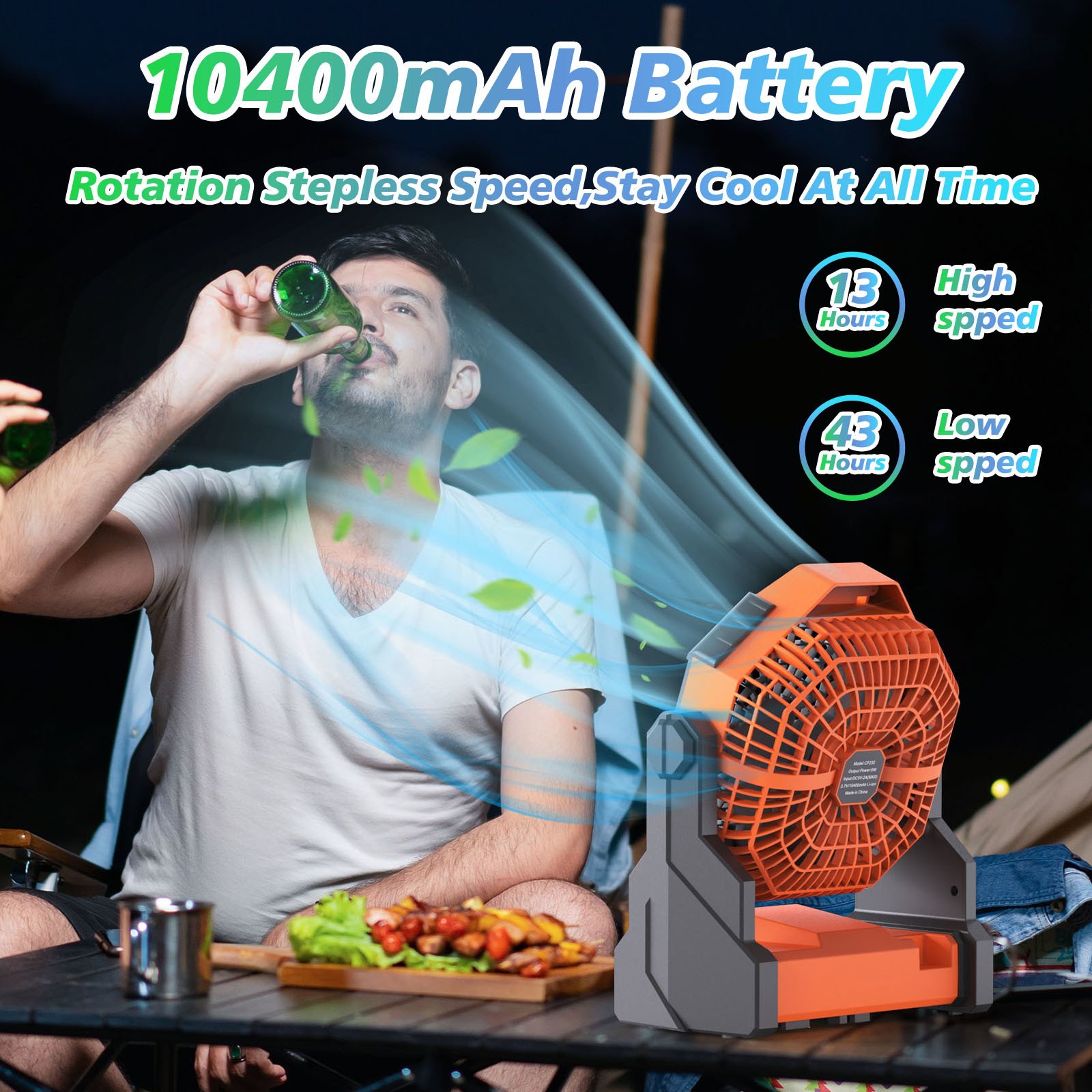Ambitelligence Battery Operated Fan, 10400mAh Camping Fan Rechargeable, Portable Fan With LED Lantern, USB Battery Powered Tent Fan For Camping With H