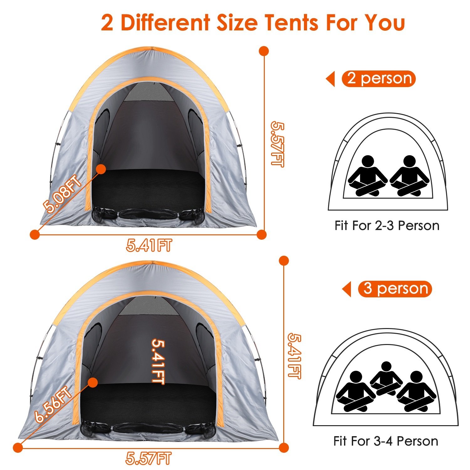 *6.56x5.57x5.57ft Spacious Room*:With unfolding size of 6.56x5.57x5.57ft,the tent provides large and spacious space to contain 3-4 persons to comfortably rest and sleep even on the go. Enjoy and share more wonderful traveling time with your lovers,kids,friends,families.