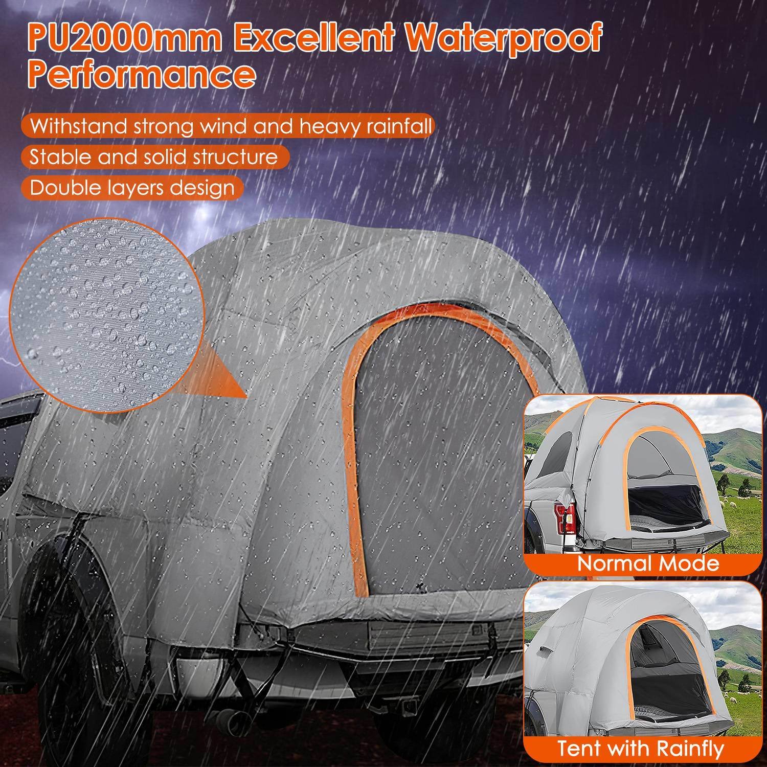Home > Truck Bed Tent Waterproof Windproof Pickup Truck Tent with Carry Bag 5.41-6.56FT Bed Rainfly PU2000mm Waterproof for Camping Travel