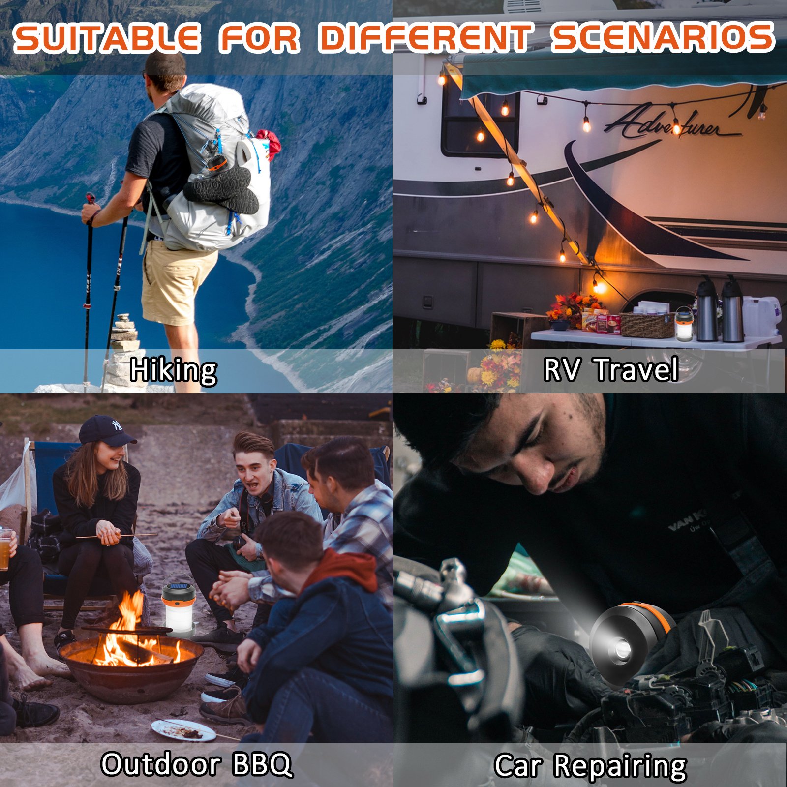 • [CAMPING GEAR MUST HAVES] The package contains a camping light, a charging cable, a carabiner, a manual,a multifunctional whistle. Camping multifunctional whistle includes compass, thermometer, magnifier.It is convenient to hang on tents or backpacks, and can be used as a power bank in emergencies.